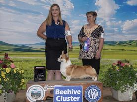 May 8, 2022 Beehive Cluster in South Jordan, UT. Handled by Lydia Hovanski Lyon. WB/BOW for a 5 point major under Judge Gloria Kerr. This completes her Championship!!
